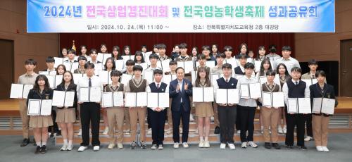 [½Åµ¿¾Æ¹æ¼Û=À̺´½Ä±âÀÚ] ÀüºÏƯº°ÀÚÄ¡µµ±³À°Ã»(±³À°°¨ ¼­°Å¼®)Àº 24ÀÏ µµ±³À°Ã» 2Ãþ °­´ç¿¡¼­ Á¦53³âÂ÷ Àü±¹¿µ³óÇлýÃàÁ¦¿Í Á¦14ȸ Àü±¹»ó¾÷°æÁø´ëȸ¿¡¼­ ÀÔ»ó ÇлýÀ» ÃàÇÏÇÏ´Â ¼º°ú°øÀ¯È¸¸¦ °¡Á³´Ù.