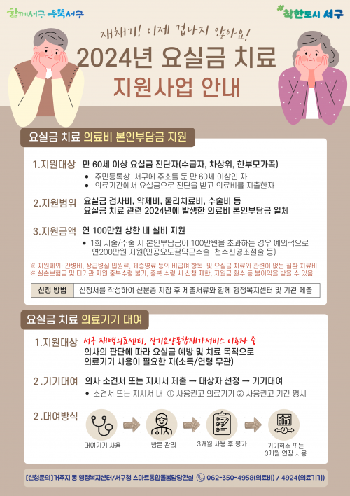 À̹ø »ç¾÷Àº °í·ÉÃþÀÇ »çȸÀû Âü¿©¸¦ Á¦ÇÑÇÏ´Â ¿ä½Ç±ÝÀ» Àû±â¿¡ Ä¡·áÇÒ ¼ö ÀÖµµ·Ï °ü·Ã ÀÇ·áºñ¿Í ÀÇ·á±â±â¸¦ Áö¿øÇÏ´Â »ç¾÷ÀÌ´Ù.
