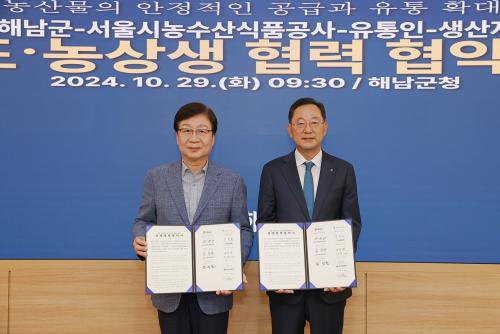 À̳¯ Çù¾à½Ä¿¡´Â ¸íÇö°ü ÇØ³²±º¼ö¿Í ÇØ³²±º »ý»ê¡¤À¯ÅëÀÎ ´Üü, ¼¿ï½Ã³ó¼ö»ê½Äǰ°ø»ç ¹®¿µÇ¥ »çÀå¿Í Çѱ¹½ÃÀåµµ¸ÅÀο¬ÇÕȸ ÀÓ¼ºÂù ȸÀå, ³óÇù°¼°øÆÇÀå ÀÌÁؽ »çÀåÀÌ Âü¼®Çß´Ù.