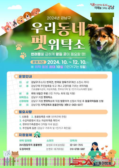 ÀÌ¿ë´ë»óÀº °³²±¸¿¡ Áֹεî·ÏÀ» µÎ°í ±âÃÊ»ýȰ¼ö±ÞÀÚ, Â÷»óÀ§°èÃþ, ÇѺθð°¡Á· µî Ãë¾à°èÃþ°ú 1ÀÎ °¡±¸´Ù. 1ÀÎ °¡±¸ÀÇ °æ¿ì ¼Òµæ Á¦ÇÑÀÌ ¾ø´Ù. Ãë¾à°èÃþÀº ÃÖ´ë 10ÀÏ, 1ÀÎ °¡±¸´Â ÃÖ´ë 5ÀϱîÁö ¹«·á·Î ÀÌ¿ëÇÒ ¼ö ÀÖÀ¸¸ç, ÇÏ·ç ´ÜÀ§µµ ½ÅûÀÌ °¡´ÉÇÏ´Ù. À§Å¹ Àå¼Ò´Â û´ãµ¿ ¼ÒÀç 24½Ãû´ã¿ì¸® µ¿¹°º´¿ø(¢Ï02—541-7515), °³Æ÷µ¿ ¼ÒÀç µµÅ·¾î¹Ù¿ô(¢Ï010-6798-5087) 2°÷ÀÌ´Ù.