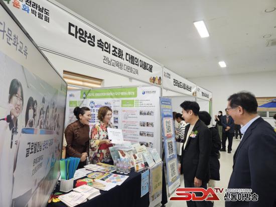 ¶Ç È«º¸ ºÎ½º¿¡´Â Àü³²±³À°Ã»ÀÌ ÃßÁøÇÏ´Â ´Ù¹®È­±³À° ¿ì¼ö »ç·Ê¸¦ ÇÑ ÀÚ¸®¿¡¼­ ¸¸³ª º¼ ¼ö ÀÖ¾ú´Ù. ¡®´Ù¾ç¼º ¼ÓÀÇ Á¶È­, ´Ù¸§ÀÇ ¾Æ¸§´Ù¿ò¡¯ ÁÖÁ¦ ºÎ½º¿¡´Â Çѱ¹¾î ±³À°, ÀÌÁß¾ð¾î±³À° ¿î¿µ ¿ì¼ö »ç·Ê¿Í ´Ù¹®È­ ÄûÁî°¡ ÁøÇàµÅ ¹æ¹®°´µéÀÇ Å« È£ÀÀÀ» ¹Þ¾Ò´Ù.