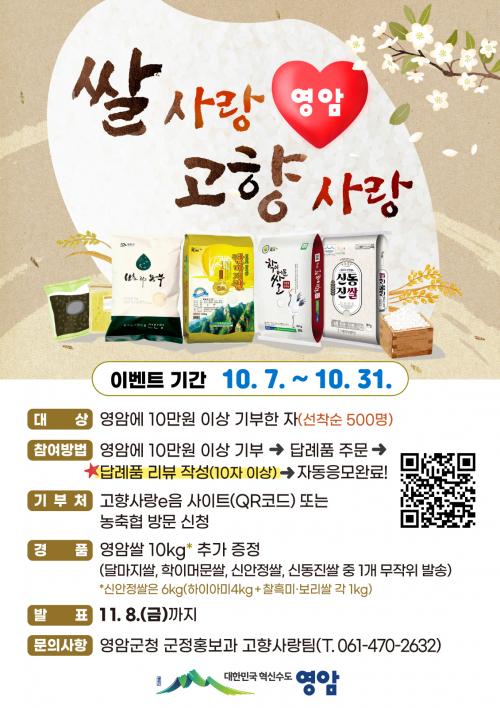 ¿ì½ÂÈñ ¿µ¾Ï±º¼ö´Â ¡°»êÁö ½Ò °¡°ÝÀÌ Ç϶ô, ÀÌ»ó±âÈÄ °í¿Â ÇÇÇØ µîÀ¸·Î Èûµé¾îÇÏ´Â ³ó°¡¸¦ À§ÇØ ¸¶·ÃÇÑ À̺¥Æ®¿¡ Âü¿©ÇØ ÁØ ¸¹Àº ºÐµé¿¡°Ô °¨»çµå¸°´Ù. ¿¬¸»±îÁö ÁÁÀº ³»¿ëÀ¸·Î °íÇâ»ç¶û±âºÎ¸¦ È«º¸Çؼ Áö¿ª¿¡ ²À ÇÊ¿äÇÑ ÀÏ¿¡ ±âºÎ±ÝÀ» ¾²µµ·Ï Çϰڴ١±¶ó°í ¸»Çß´Ù.