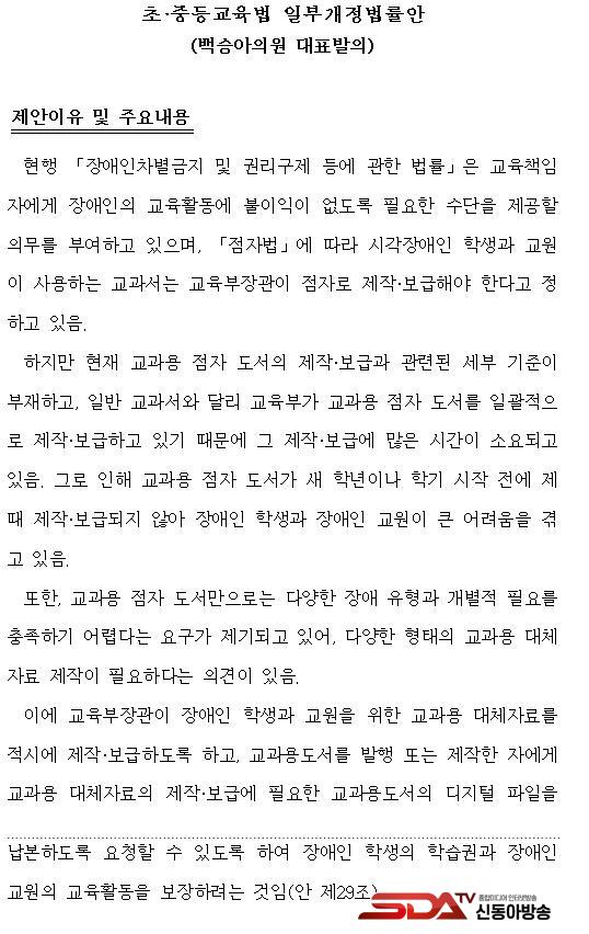 ¡à ±¹È¸ ±³À°À§¿øÈ¸ ¹é½Â¾Æ ÀÇ¿ø(´õºÒ¾î¹ÎÁÖ´ç)ÀÌ ´ëÇ¥ ¹ßÀÇÇÑ ¡¸ÃÊ¡¤ÁߵÀ°¹ý °³Á¤¾È¡¹Àº Àå¾ÖÇлý°ú ±³¿øÀ» À§ÇÑ ±³°ú¿ë µµ¼­ÀÇ ´ëüÀڷḦ Àû½Ã¿¡ º¸±ÞÇÒ ±³À°ºÎ Àå°üÀÇ Àǹ«¸¦ ±ÔÁ¤Çϰí, µðÁöÅÐ ÆÄÀÏÀ» ¿äûÇÒ ¼ö ÀÖÀ¸¸ç, ¿äû¹ÞÀº ¾÷ü´Â Ưº°ÇÑ »çÀ¯°¡ ¾ø´Â ÇÑ ³³º»¿äû¿¡ ÀÀÇØ¾ß ÇÑ´Ù´Â ³»¿ëÀ» ´ã°í ÀÖ´Ù.