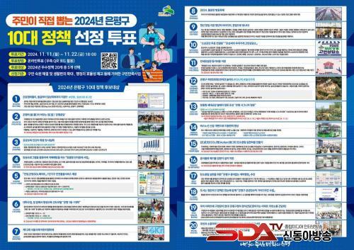 ÅõÇ¥´Â ÀºÆò±¸¹Î ´©±¸³ª Âü¿© °¡´ÉÇÏ¸ç ±¸¹Î ¼÷¿ø ÇØ°á, »ýȰÆíÀÇ È®´ë, ÇàÁ¤ÀÇ È¿À²¼º Á¦°í µî¿¡ ±â¿©ÇÑ ±¸¹Î ¸¸Á· »ç¾÷ 5°³¸¦ ¼±ÅÃÇÏ¸é µÈ´Ù. ¿Â¶óÀÎÀ¸·Î´Â ÀºÆò±¸Ã» ´©¸®ÁýÀ» ÅëÇØ ÅõÇ¥°¡ °¡´ÉÇϰí, ¿ÀÇÁ¶óÀÎÀ¸·Î´Â ÀºÆò±¸Ã» º»°ü ·Îºñ 1Ãþ¿¡ ¹æ¹®ÇÏ¸é µÈ´Ù.