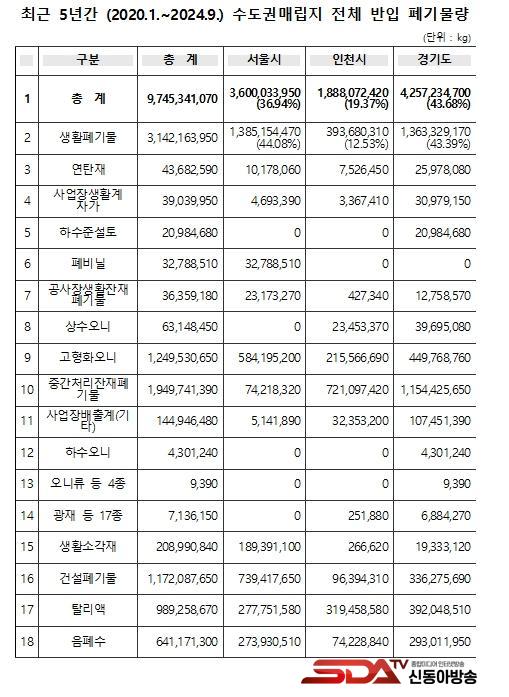 ÀÌ °¡¿îµ¥ 43.68%¿¡ ÇØ´çÇÏ´Â 425¸¸7õ234tÀÇ Æó±â¹°ÀÌ °æ±âµµ »êÇÏ ÁöÀÚü¿Í ±â°ü¿¡¼ ³Ñ¾î¿Â °ÍÀ¸·Î ³ªÅ¸³µ´Ù. ÀÌ¾î ¼¿ï½Ã °¢ ÀÚÄ¡±¸ ¹× ¼Ò¼Ó ±â°ü¿¡¼ ¹ÝÀÔµÈ Æó±â¹°ÀÌ 360¸¸33tÀ¸·Î ÀüüÀÇ 36.94%¸¦ Â÷ÁöÇß´Ù.