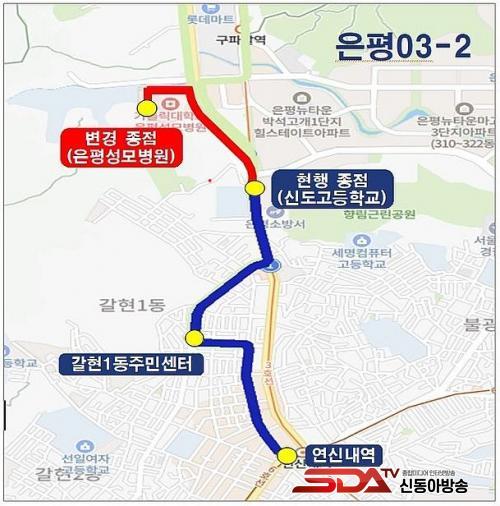 ÀºÆò03-2¹ø ³ë¼±Àº ¿¬½Å³»¿ªÀ» ±âÁ¡À¸·Î ¹èÂ÷°£°ÝÀ» ÆòÀÏ 10~20ºÐ °£°ÝÀ¸·Î ÇÏ·ç 65ȸ ¿îÇàÇϰí, º´¿ø ³» ¼ÅƲ¹ö½º ½Â°Àå¿¡ ¸¶À»¹ö½º Á¤·ùÀåÀ» ¼³Ä¡ÇØ ¿îÇàÇÑ´Ù.