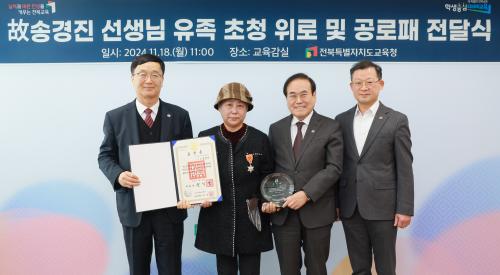 ÀÌ¿¡ ÀüºÏ±³À°Ã»Àº 29³â°£ Çлý ±³À°¿¡ Çå½ÅÇÑ °íÀÎÀÇ ¶æÀ» ±â¸®°í °íÀÎÀÇ °¡Á·À» À§·ÎÇϱâ À§ÇØ À̳¯ ±ÙÁ¤Æ÷Àå Àü¼ö½Ä°ú ÇÔ²² °ø·ÎÆÐ Àü´Þ½ÄÀ» °³ÃÖÇß´Ù.