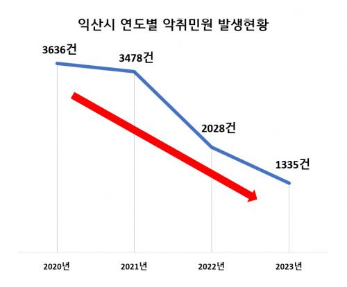 ½ÇÁ¦ ÀÍ»ê½Ã¿¡ Á¢¼öµÈ ¿¬µµº° ¾ÇÃë ¹Î¿ø ¹ß»ý °Ç¼ö´Â ¡â2020³â 3,636°Ç ¡â2021³â 3,478°Ç ¡â2022³â 2,028°Ç ¡â2023³â 1,335°ÇÀ¸·Î ¾à 63% °¨¼ÒÇß´Ù.