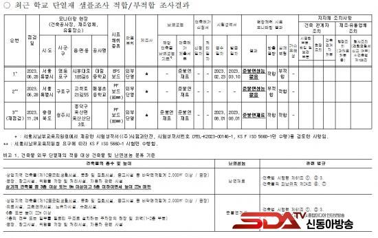 ¡à ¶ÇÇÑ Çã¼úÇÑ °ü¸®°¨µ¶ ½Ã½ºÅÛ ¶§¹®¿¡ ºÒ·® Áغҿ¬´Ü¿Àç°¡ »ç¿ëµÇ¾ú´ø °ÍÀ¸·Î Á¶»çµÆ´Ù. Çѱ¹°Ç¼³±â¼ú¿¬±¸¿øÀÌ Á¦ÃâÇÑ ¡®2021~2023³â °ÇÃà¾ÈÀü ¸ð´ÏÅ͸µ¡¯¿¡ µû¸£¸é Àü±¹ 41°³ ÇöÀå¿¡ ´ëÇÑ ºÒ·®´Ü¿Àç ½Å°í °Ç¼ö Áß 2023³â ¼¿ï½Ã Çб³ °ø»çÇöÀå¿¡¼ 2°Ç¸¸ ¸ð´ÏÅ͸µ °Ë»ç¸¦ Çߴµ¥ 2°Ç ¸ðµÎ°¡ ºÒ·® ´Ü¿Àç·Î Àû¹ßµÆ´Ù.