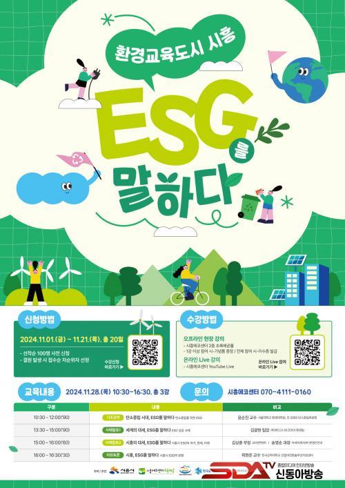 °ÀÇ´Â ÃÑ 3°À¸·Î ź¼ÒÁ߸³À» À§ÇÑ ESG(À±¼øÁø ±³¼ö ¼¿ï´ëÇб³ ȯ°æ´ëÇпø, Àü 2050ź¼ÒÁ߸³À§¿øÈ¸), ESG ¼º°ø »ç·Ê(¢ßÆÄŸ°í´Ï¾ÆÄÚ¸®¾Æ ±è±¤Çö ÆÀÀå), ½ÃÈï½Ã ESGÀÇ °ú°Å, ÇöÀç, ¹Ì·¡(ÄÚ¾î¿£ÅØ¢ß) ±è»óÈÆ ºÎÀå, ¾Æ¼¼¾ÆÁ¦Áö¢ß ¼Û¿µ¼ø °úÀå)·Î ÁøÇàµÇ¸ç, ÀÌÈÄ ÀÚÀ¯Åä·Ð ½Ã°£¿¡´Â ¡®½ÃÈï½Ã ESGÀÇ ¹æÇâ(Çѱ¹°øÇдëÇб³ ÃÖÇöÁØ ±³¼ö)¡¯À» ÁÖÁ¦·Î ÁøÇàµÈ´Ù.