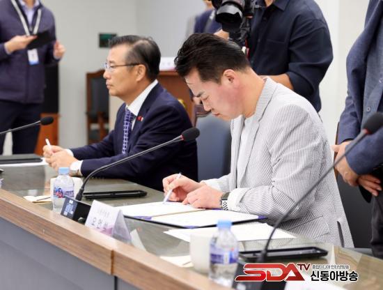 ¡ã¿À¾ð¼® µµºÀ±¸Ã»ÀåÀÌ °æ¿ø¼± ÁöÇÏÈ­ ÃßÁøÇùÀÇȸ Çù¾à¼­ ¹× °øµ¿ °ÇÀǹ®¿¡ ¼­¾à(¼­¸í)À» Çϰí ÀÖ´Ù.(2024. 11. 21. µ¿´ë¹®±¸Ã»)