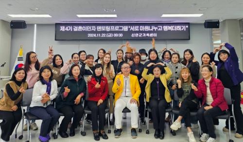 [½Åµ¿¾Æ¹æ¼Û=À̺´½Ä±âÀÚ] ½Å¾È±º(±º¼ö ¹Ú¿ì·®)Àº ´Ù¹®È­°¡Á¤ÀÇ È­¸ñ°ú °áÈ¥À̹ÎÀÚÀÇ ¾ÈÁ¤ÀûÀÎ Á¶±â Á¤ÂøÀ» Áö¿øÇϱâ À§ÇØ 2021³âºÎÅÍ ¿î¿µÇØ ¿Â °áÈ¥À̹ÎÀÚ ¸àÅ丵 ÇÁ·Î±×·¥ÀÇ Á¦4±â¸¦ ¼º°øÀûÀ¸·Î ¸¶¹«¸®Çß´Ù. À̹ø ÇÁ·Î±×·¥Àº ¸àƼ 12¸í(°áÈ¥ÀÌÁÖ¿©¼º)°ú ¸àÅä 12¸í(»õ¸¶À»¹®°íȸ ȸ¿ø)À¸·Î ±¸¼ºµÈ ÃÑ 24¸íÀÌ 9°³¿ù°£ Á¤±âÀûÀ¸·Î ¸ð¿© Áö¿ª Ưȭ ±³À°°ú »ýȰ ¹ÐÂøÇü Ȱµ¿À» ÇÔ²²Çß´Ù.