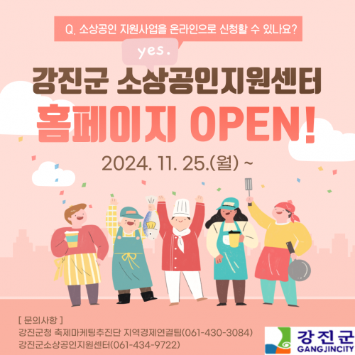 À̹ø¿¡ °³¼³µÈ ¿Â¶óÀΠȨÆäÀÌÁö´Â °­Áø±ºÃ» ȨÆäÀÌÁöÀÇ ºÐ¾ßº°Á¤º¸ > »ê¾÷/°æÁ¦ > ¼Ò»ó°øÀÎÁö¿ø¼¾ÅÍ ¸Þ´º¸¦ ÅëÇØ Á¢¼ÓÇÒ ¼ö ÀÖÀ¸¸ç, ¼Ò»ó°øÀÎ Áö¿ø»ç¾÷ °ü·Ã ÇÊ¿äÇÑ ¼­·ù¿Í ¾È³»¸¦ ¼Õ½±°Ô È®ÀÎÇÒ ¼ö ÀÖ´Ù.