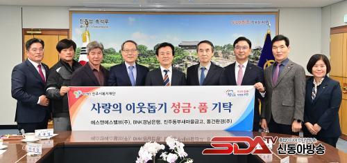À̹ø ±âŹ½Ä¿¡¼ ¿¡½º¾Ø¿¡½º¹ëºê(ÁÖ)¿¡¼ ¼º±Ý 5000¸¸ ¿ø, BNK°æ³²ÀºÇà¿¡¼ ¼ºÇ°(±èÀå±èÄ¡ 650¹Ú½º, ȯ°¡¾× 2,600¸¸ ¿ø »ó´ç), ÁøÁÖµ¿ºÎ»õ¸¶À»±Ý°í¿¡¼ ¼º±Ý 1500¸¸ ¿ø, µ¿°Çȯ°æ(ÁÖ)¿¡¼ ¼º±Ý 1000¸¸ ¿øÀ» Áö¿ª»çȸ Àú¼ÒµæÃþ ¹× Àå¾ÖÀÎ º¹Áö Áö¿øÀ» À§ÇØ ±âŹÇß´Ù.
