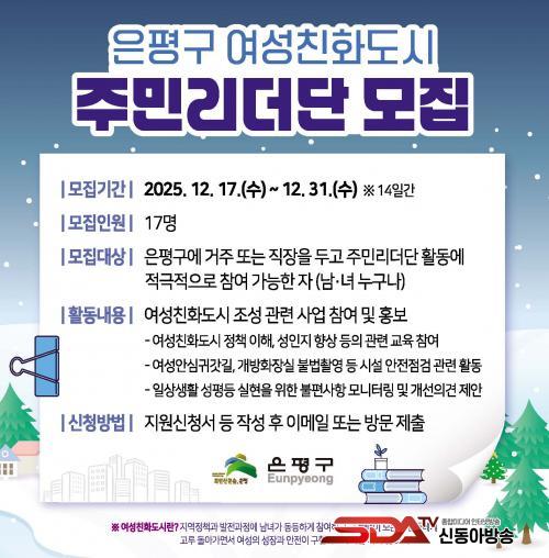 [½Åµ¿¾Æ¹æ¼Û ÀºÆò±¸=À̽ŵ¿±âÀÚ] ¼­¿ï ÀºÆò±¸´Â ¿©¼ºÄ£È­µµ½Ã Á¶¼ºÀ» À§ÇØ ÇÔ²² ÇÒ ¡®¿©¼ºÄ£È­µµ½Ã Áֹθ®´õ´Ü¡¯ ´Ü¿øÀ» »õ·Î ¸ðÁýÇÑ´Ù°í ¹àÇû´Ù.