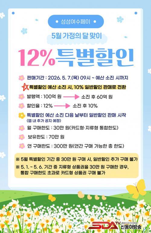 ƯÈ÷ 100¾ï ¿ø ±Ô¸ðÀÇ Æ¯º°ÇÒÀÎÀ» ÅëÇØ 12%ÀÇ ÇÒÀÎ ÇýÅÃÀ» Á¦°øÇϸç, ÇØ´ç ¹°·®ÀÌ ¼ÒÁøµÉ °æ¿ì ´ÙÀ½³¯ºÎÅÍ´Â 10% ÇÒÀÎÀ²·Î 60¾ï ¿øÀ» Ãß°¡ ¹ßÇàÇØ ¼Òºñ ÁøÀÛ ºÐÀ§±â¸¦ À̾ ¹æÄ§ÀÌ´Ù. Ưº°ÇÒÀÎÀº 5¿ù 7ÀÏ ¿ÀÀü 9½ÃºÎÅÍ ¿¹»ê ¼ÒÁø ½Ã±îÁö ÁøÇàµÈ´Ù.