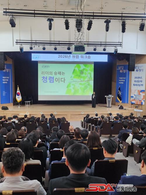 [½Åµ¿¾Æ¹æ¼Û=ÀÌÀçö±âÀÚ] È­¼ºÆ¯·Ê½Ã´Â 22ÀÏ ½Ãû ´ë°­´ç¿¡¼­ °íÀ§°øÁ÷ÀÚ¸¦ ´ë»óÀ¸·Î ¡®2026³â û·Å ¿öÅ©¼ó¡¯À» °³ÃÖÇß´Ù. À̹ø ¿öÅ©¼óÀº Á¶Á÷À» À̲ô´Â °íÀ§°øÁ÷ÀÚÀÇ Ã»·Å ¸®´õ½ÊÀ» °­È­Çϰí, ¹ÝºÎÆÐ °ü·Ã ¹ý·É¿¡ ´ëÇÑ ÀÌÇØ¸¦ ³ô¿© °øÁ¤Çϰí Åõ¸íÇÑ °øÁ÷¹®È­¸¦ Á¤Âø½Ã۱â À§ÇØ ¸¶·ÃµÆ´Ù.