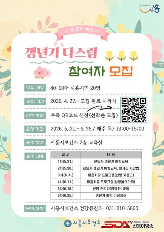 [½Åµ¿¾Æ¹æ¼Û ½ÃÈï½Ã=À̽ŵ¿±âÀÚ] ½ÃÈï½Ãº¸°Ç¼Ò´Â ¿ÃÇØºÎÅÍ ÇÑÀÇ¾à °Ç°­ÁõÁø»ç¾÷À» ½Ã¹üÀ¸·Î ¿î¿µÇϰí, 40~60´ë ½ÃÈï½Ã¹ÎÀ» ´ë»óÀ¸·Î °»³â±â ½Åü¤ýÁ¤½Å °Ç°­°ü¸®¸¦ Áö¿øÇÏ´Â ÇÑÀÇ¾à °Ç°­ÁõÁø ÇÁ·Î±×·¥ ¡®°»³â±â ´Ù½º¸²¡¯ Âü¿©ÀÚ¸¦ ¸ðÁýÇÑ´Ù.