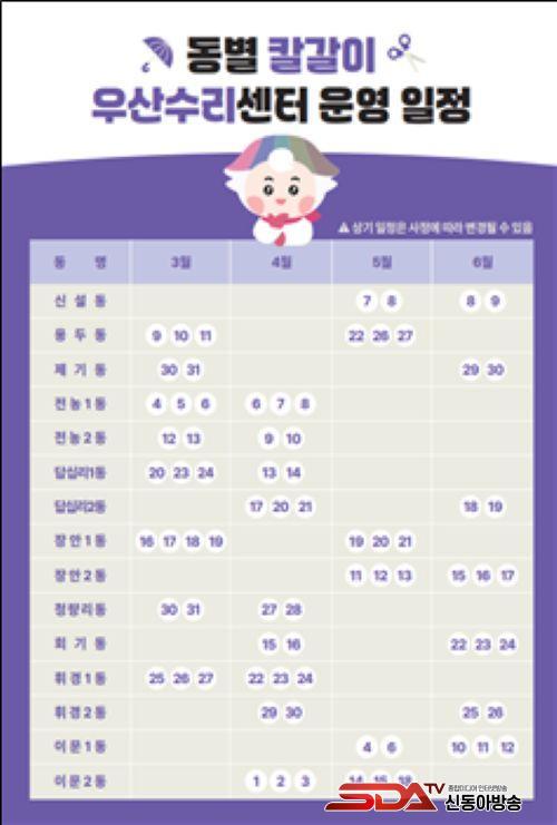 ÁֹΠü°¨µµ°¡ Å« ¼ºñ½º´Â ¡®¿ì¸® µ¿³× Ä®°¥ÀÌ¡¤¿ì»ê¼ö¸®¼¾ÅÍ¡¯´Ù. ¿äÁòÀº µ¿³×¿¡¼ Ä®°¥À̸¦ ¸Ã±æ °÷À» ã±â ½±Áö ¾Ê´Ù. ±¸´Â ÀÌ °ø¹éÀ» ¸Þ¿ì±â À§ÇØ µ¿ Áֹμ¾Å͸¦ ÇϷ羿 ¼øÈ¸ÇÏ¸ç ¹«µ®Áø Ä®°ú °¡À§´Â ³¯À» ¼¼¿öÁÖ°í, °íÀå ³ ¿ì»êÀº »ì(»À´ë) ±³Ã¼ µî °£´Ü ¼ö¼±À» µ½´Â´Ù. ¿î¿µ ½Ã°£Àº ÆòÀÏ ¿ÀÀü 10½Ã 30ºÐ~¿ÀÈÄ 4½Ã, ºñ¿ëÀº ¹«·á´Ù. ¿ì»êÀº ¼ö¸® ½Ã°£ÀÌ ºñ±³Àû ±æ¾î Á¢¼ö ¹°·®ÀÌ ¸¹À¸¸é Á¶±â ¸¶°¨µÉ ¼ö ÀÖ´Ù°í ±¸´Â ¾È³»Çß´Ù.