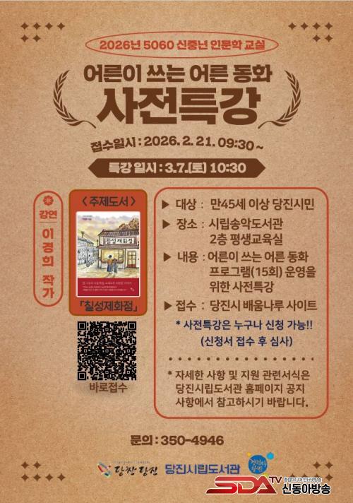 [½Åµ¿¾Æ¹æ¼Û=ÀÌÀçö±âÀÚ] ´çÁø½Ã´Â ¼Û¾Çµµ¼­°ü¿¡¼­ ¼¼´ë ¸ÂÃãÇü ±Û¾²±â ÇÁ·Î±×·¥ÀÇ ÀÏȯÀ¸·Î ¸¸ 45¼¼ ÀÌ»óÀ» ´ë»óÀ¸·Î ÇÑ ¡®¾î¸¥ÀÌ ¾²´Â ¾î¸¥µ¿È­(2026³â 5060 ½ÅÁß³â Àι®ÇÐ ±³½Ç)¡¯¸¦ ¿î¿µÇÑ´Ù°í 4ÀÏ ¹àÇû´Ù.