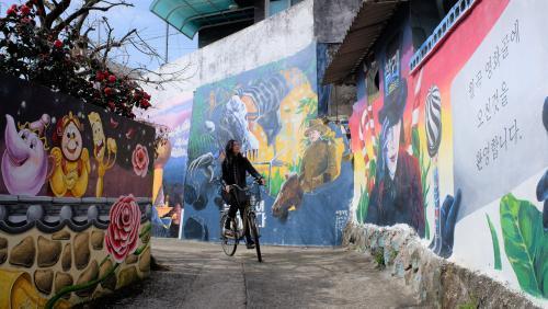 [½Åµ¿¾Æ¹æ¼Û=¹Ú±¤¿Á±âÀÚ] 22ÀÏ, º¸¼º±º ¹ú±³À¾ ¿ù°î ¿µÈ­°ñ º®È­¸¶À»À» ãÀº °ü±¤°´ÀÌ ÀÚÀü°Å¸¦ Ÿ°í º®È­¸¦ °¨»óÇϰí ÀÖ´Ù.