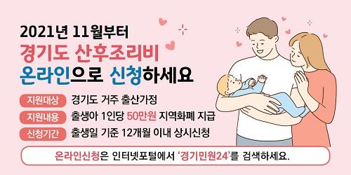 [½Åµ¿¾Æ¹æ¼Û´º½º=¹èÁöÀ± ±âÀÚ] °æ±âµµ°¡ Ãâ»ê°¡Á¤¿¡ 50¸¸ ¿øÀ» Áö¿øÇÏ´Â ¡®°æ±âµµ »êÈÄÁ¶¸®ºñ Áö¿ø»ç¾÷¡¯ Á¢¼ö ¹æ¹ýÀ» ¿Â¶óÀÎÀ¸·Î È®´ëÇÕ´Ï´Ù. °æ±âµµ »êÈÄÁ¶¸®ºñ Áö¿ø»ç¾÷Àº ž Áö 12°³¿ù À̳» Ãâ»ý¾Æ°¡ ÀÖ´Â °¡Á¤À» ´ë»óÀ¸·Î Ãâ»ýÀϰú ½ÅûÀÏ ¸ðµÎ °æ±âµµ¿¡ ÁÖ¡¦