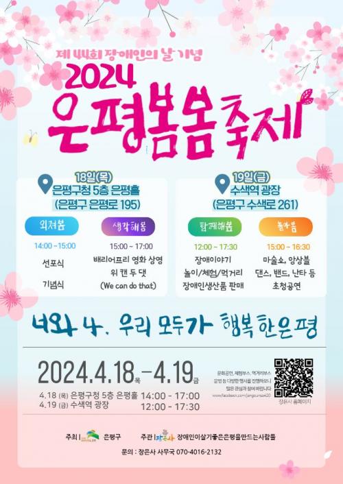 [½Åµ¿¾Æ¹æ¼Û ÀºÆò±¸=À̽ŵ¿±âÀÚ]ÀºÆò±¸´Â ¿À´Â 18ÀϺÎÅÍ 19ÀϱîÁö ÀºÆò±¸Ã»°ú ¼ö»ö¿ª ±¤Àå¿¡¼­ Àå¾ÖÀΰú ºñÀå¾ÖÀÎÀÌ ÇÔ²² Âü¿©ÇÏ´Â ¼ÒÅë°ú È­ÇÕÀÇ ÀåÀÎ Á¦44ȸ Àå¾ÖÀÎÀÇ ³¯ ±â³ä ¡®ÀºÆòº½º½ÃàÁ¦¡¯¸¦ °³ÃÖÇÑ´Ù°í ¹àÇû´Ù. 18ÀÏ¿¡´Â ÀºÆò±¸Ã» 5Ãþ ÀºÆòȦ¿¡¼­ Àå¾ÖÀÎÀ¸·Î¡¦