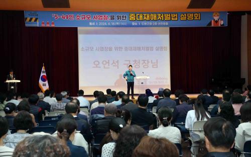 [½Åµ¿¾Æ¹æ¼Û µµºÀ±¸=À̽ŵ¿±âÀÚ]µµºÀ±¸°¡ 4¿ù 18ÀÏ ±¸Ã» ¼±ÀκÀȦ¿¡¼­ 5ÀÎ ÀÌ»ó 50ÀÎ ¹Ì¸¸ ¼Ò±Ô¸ð »ç¾÷Àå »ç¾÷ÁÖ ¹× °ü°èÀÚ ¾à 230¿© ¸íÀÌ Âü¼®ÇÑ °¡¿îµ¥ Áß´ëÀçÇØÃ³¹ú¹ý ¼³¸íȸ¸¦ °³ÃÖÇß´Ù. À̹ø ¼³¸íȸ´Â ¿ÃÇØ 1¿ù 27ÀϺÎÅÍ Áß´ëÀçÇØÃ³¹ú¹ýÀÌ Àü¸é ½ÃÇàµÊ¿¡ µû¶ó È®¡¦