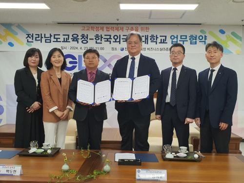 [½Åµ¿¾Æ¹æ¼Û Àü³²¿©¼ö=À̽ŵ¿±âÀÚ]Àü¶ó³²µµ±³À°Ã»Àº 23ÀÏ Ã»»ç ºñÁî´Ï½º½Ç¿¡¼­ Çѱ¹¿Ü±¹¾î´ëÇб³¿Í °í±³ÇÐÁ¡Á¦ Çù·ÂüÁ¦ ±¸ÃàÀ» À§ÇÑ ¾÷¹«Çù¾àÀ» ü°áÇß´Ù. À̹ø Çù¾àÀº °í±³ÇÐÁ¡Á¦¿¡ ´ëºñÇØ µµ±³À°Ã»°ú ´ëÇÐÀÇ ¿¬°è¸¦ ÅëÇØ °í±³ ±³À°°úÁ¤ ¿î¿µ Áö¿øÀ» À§ÇØ ÃßÁøµÆ´Ù¡¦