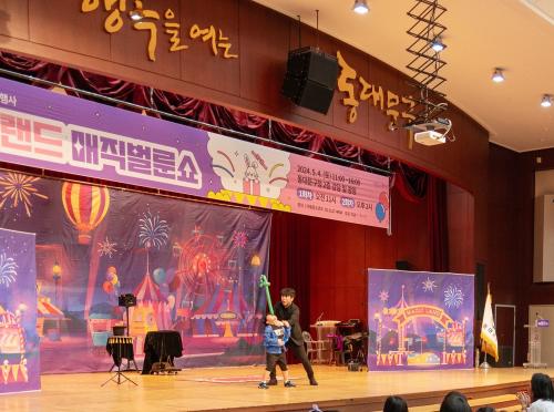 [½Åµ¿¾Æ¹æ¼Û µ¿´ë¹®=À̽ŵ¿±âÀÚ]4ÀÏ ¼­¿ï µ¿´ë¹®±¸Ã»¿¡¼­ ¾î¸°À̳¯ ±â³äÇà»ç°¡ ¿­·È´Ù. À̳¯ ±¸Ã» °­´ç¿¡¼­´Â ¹ÂÁöÄÃ, dz¼±ÆÛÆ÷¸Õ½º, ±×¸²ÀÚ¼î·Î ±¸¼ºµÈ ¡®¸ÅÁ÷¹ú·é¼î¡¯°¡ 11½Ã¿Í 14½Ã 2ȸ¿¡ °ÉÃÄ ¾ÆÀ̵鿡°Ô ȯ»óÀûÀÎ 60ºÐÀ» ¼±»çÇß´Ù. ¸¶¼ú°ø¿¬°ú ´õºÒ¾î ij¸®Ä¿¡¦