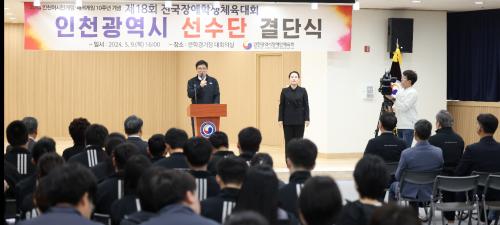 [½Åµ¿¾Æ¹æ¼Û ÀÎõ= À±¹Î½Ä±âÀÚ]µµ¼ºÈÆ ÀÎõ±¤¿ª½Ã±³À°°¨Àº 9ÀÏ ¹®Çаæ±âÀå¿¡¼­ ¿­¸° Á¦18ȸ Àü±¹Àå¾ÖÇлýüÀ°´ëȸ ÀÎõ¼±¼ö´Ü °á´Ü½Ä¿¡ Âü¼®ÇØ ¼±¼ö´ÜÀ» °Ý·ÁÇß´Ù. °á´Ü½Ä¿¡´Â Çлý¼±¼ö´Ü°ú º¸È£ÀÚ µî 200¿© ¸í°ú À¯Á¤º¹ ÀÎõ½ÃÀå, ±èÀ¯°ï ÀÎõ½ÃÀÇȸ ¹®È­º¹ÁöÀ§¿øÈ¸¡¦