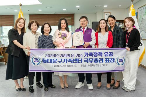 [½Åµ¿¾Æ¹æ¼Û µ¿´ë¹®±¸=À̽ŵ¿±âÀÚ]¼­¿ï µ¿´ë¹®±¸(±¸Ã»Àå ÀÌÇÊÇü)´Â µ¿´ë¹®±¸°¡Á·¼¾ÅͰ¡ Áö³­ 8ÀÏ ¼­¿ïÁö¹æÁ¶´Þû¿¡¼­ ¿­¸° ¡®2024³â °¡Á¤ÀÇ ´Þ ±â³ä½Ä¡¯¿¡¼­ °¡Á·Á¤Ã¥ À¯°ø´Üü·Î ¼±Á¤µÇ¾î ±¹¹«ÃѸ® ǥâÀ» ¼ö»óÇß´Ù°í ¹àÇû´Ù. µ¿´ë¹®±¸°¡Á·¼¾ÅÍ´Â ¸Â¹úÀ̰¡Á·, ÇѺΡ¦