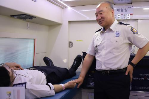 [½Åµ¿¾Æ¹æ¼Û ÀÎõ= À±¹Î½Ä±âÀÚ]¼Ò¹æ´ë¿øÀÌ 13ÀÏ ÀÎõ¼Ò¹æº»ºÎ û»ç¾Õ Ç÷¾×¿ø Â÷·®¿¡¼­ ÇåÇ÷À» Çϰí ÀÖ´Ù. À̳¯ ÇåÇ÷Àº ÃÖ±Ù µ¿·á Á÷¿ø ¹è¿ìÀÚÀÇ ±Þ¼º¹éÇ÷º´ Áø´Ü¿¡ µû¸¥ Ä¡·á±â°£ Áß ¼öÇ÷ Çʿ伺À» °ø°¨ÇÏ°í µû¶æÇÑ ÀÀ¿øÀ¸·Î µ¿·á¾Ö¸¦ ¹ßÈÖÇØ Á÷¿øµéÀÇ ÀÚ¹ßÀûÀÎ Âü¿©·Î¡¦