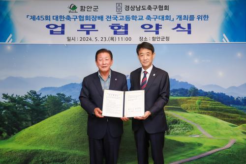 [½Åµ¿¾Æ¹æ¼Û ÇԾȱº=À̽ŵ¿±âÀÚ]ÇԾȱºÀº 23ÀÏ ±º¼ö½Ç¿¡¼­ °æ»ó³²µµÃ౸Çùȸ¿Í Á¦45ȸ ´ëÇÑÃ౸ÇùȸÀå¹è Àü±¹°íµîÇб³ Ã౸´ëȸ °³ÃÖ¸¦ À§ÇÑ ¾÷¹« Çù¾àÀ» ü°áÇß´Ù. Á¶±ÙÁ¦ ÇԾȱº¼ö, ±è»ó¼® °æ»ó³²µµÃ౸ÇùȸÀå, °û¼¼ÈÆ ÇԾȱºÀÇȸ ÀÇÀå, Á¤º´¿Á ÇԾȱºÃ¼À°È¸Àå, Àü¡¦