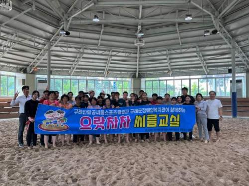 [½Åµ¿¾Æ¹æ¼Û ±¸·Ê=À±¼ºÁÖ ±âÀÚ] ±¸·Ê±ºÃ» ¾¾¸§´ÜÀÌ Áö¿ª Àå¾ÖÀÎÀ» ´ë»óÀ¸·Î Àç´É±âºÎ¿¡ ³ª¼¹´Ù. ¾¾¸§´ÜÀº Áö³­ 5¿ù 22ÀÏ ¹Ý´Þ°õ½ºÆ÷Ã÷Ŭ·´ ȸ¿øµé°ú ÇÔ²², ±¸·Ê±ºÀå¾ÖÀκ¹Áö°ü ÀÌ¿ë Àå¾ÖÀÎ 20¿© ¸íÀ» ´ë»óÀ¸·Î ÀÏÀÏ ¾¾¸§ ±³½ÇÀ» ¿î¿µÇß´Ù. À̳¯ ¾¾¸§ ±³½Ç¿¡¼­´Â ¡¦