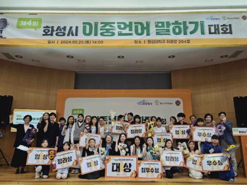 [½Åµ¿¾Æ¹æ¼Û=ÀÌÀçö ±âÀÚ] È­¼º½Ã(½ÃÀå Á¤¸í±Ù)°¡ 25ÀÏ È­¼º½Ã°¡Á·¼¾ÅÍ¿Í ÇÔ²² Çù¼º´ëÇб³ À̰ø°ü¿¡¼­¡®Á¦4ȸ È­¼º½Ã ÀÌÁß¾ð¾î¸»Çϱ⠴ëȸ¡¯¸¦ °³ÃÖÇß´Ù. ¿ÃÇØ·Î 4ȸ°¸¦ ¸ÂÀÌÇÑ¡®È­¼º½Ã ÀÌÁß¾ð¾î¸»Çϱ⠴ëȸ¡¯´Â ÀÌÁÖ¹è°æ ¾Æµ¿¡¤Ã»¼Ò³âÀÇ ÀÌÁß¾ð¾î ¿ª·®À» °­È­ÇÏ°í¡¦