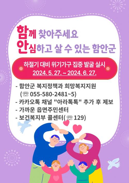 [½Åµ¿¾Æ¹æ¼Û ÇԾȱº=À̽ŵ¿±âÀÚ]ÇԾȱºÀº ÇÏÀý±â ´ëºñ Ãë¾à°èÃþ º¸È£¸¦ °­È­Çϱâ À§ÇØ ÀÌ´Þ 27ÀϺÎÅÍ ¿À´Â 6¿ù 27ÀϱîÁö ÇÑ´Þ°£ ¡®ÇÏÀý±â ´ëºñ À§±â°¡±¸ ÁýÁß ¹ß±¼±â°£¡¯À» ¿î¿µÇÑ´Ù°í ¹àÇû´Ù. ÁßÁ¡ ¹ß±¼ ´ë»óÀº º¹Áö»ç°¢Áö´ë ¹ß±¼½Ã½ºÅÛÀ¸·Î Å뺸µÈ °¡±¸, °íÀ§Çè ¡¦