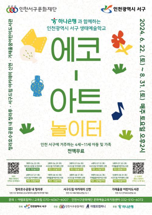 [½Åµ¿¾Æ¹æ¼Û ÀÎõ= À±¹Î½Ä±âÀÚ]ÀÎõ¼­±¸¹®È­Àç´ÜÀº ¡®ÇϳªÀºÇà°ú ÇÔ²²ÇÏ´Â ÀÎõ±¤¿ª½Ã ¼­±¸ »ýÅ¿¹¼úÇб³ <¿¡ÄÚ-¾ÆÆ®³îÀÌÅÍ>¡¯¸¦ ¼­±¸¿¡ °ÅÁÖÇÏ´Â °¡Á·´ÜÀ§¸¦ ´ë»óÀ¸·Î 6¿ù 22ÀϺÎÅÍ 8¿ù31ÀϱîÁö ÁøÇàÇÑ´Ù°í ¹àÇû´Ù. ÁÖ¿ä ¿î¿µÀå¼Ò´Â ¼­±¸µå¸²¾ÆÄ«µ¥¹Ì ½ÅÇö, û¶óÈ£¼ö°ø¡¦