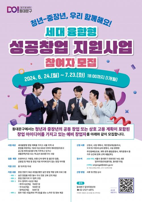 [½Åµ¿¾Æ¹æ¼Û µ¿´ë¹®±¸=À̽ŵ¿±âÀÚ]¼­¿ï µ¿´ë¹®±¸´Â û³â°ú ÁßÀå³âÀÇ °øµ¿Ã¢¾÷À» µ½´Â ¡®¼¼´ëÀ¶ÇÕÇü ¼º°øÃ¢¾÷ Áö¿ø»ç¾÷¡¯ÀÇ Âü¿©ÀÚ¸¦ ¸ðÁýÇÑ´Ù°í 21ÀÏ ¹àÇû´Ù. ÇØ´ç »ç¾÷Àº ¿­Á¤ÀûÀ̰í Âü½ÅÇÑ ¾ÆÀ̵ð¾î¸¦ °¡Áø û³â°ú ±â¼ú⋅°æ·Â⋅¿¬·ûÀÌ Ç³ºÎÇÑ ÁßÀå³âÀÌ Èû¡¦