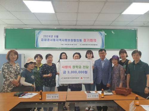 [½Åµ¿¾Æ¹æ¼Û ÀÎõ= À±¹Î½Ä±âÀÚ] ÀÎõ±¤¿ª½Ã ¼­±¸ °Ë¾Ï°æ¼­µ¿ Áö¿ª»çȸº¸ÀåÇùÀÇü(µ¿Àå ½Åµ¿¼±, °øµ¿À§¿øÀå Á¤ÃáÀÚ)´Â Áö³­ 20ÀÏ ÀåÇÐ±Ý 300¸¸¿øÀ» °ü³» Àú¼ÒµæÃþ Çлýµé¿¡°Ô Áö¿øÇÏ´Â ¡®»ç¶ûÀÇ ÀåÇÐ±Ý Àü´ÞÇà»ç¡¯¸¦ ½Ç½ÃÇß´Ù°í ¹àÇû´Ù. ÀÌ »ç¾÷Àº °Ë¾Ï°æ¼­µ¿ Áö¿ª¡¦