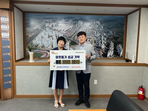 [½Åµ¿¾Æ¹æ¼Û´º½º=·ù¸®Áö±âÀÚ] ±èÇØ½Ã Áø¿µÀ¾ÇàÁ¤º¹Áö¼¾ÅÍ(À¾Àå ±èÁÖ¼ö)´Â Áö³­ 2ÀÏ ÁßÈï¿¡ÄÚ½ÃÆ¼ºÎµ¿»ê (´ëÇ¥ ½Å¾ç¼÷)À¸·ÎºÎÅÍ ÀÌ¿ôµ½±â ¼º±Ý 100¸¸¿øÀ» ±âŹ ¹Þ¾Ò´Ù°í ¹àÇû´Ù. ½Å¾ç¼÷ ´ëÇ¥´Â ¡°2023³â °ÅÁÖÁö µ¿À¾ÇàÁ¤º¹Áö¼¾ÅÍ·Î ±âºÎ¸¦ ÇÏ¿´À¸¸ç, 2024³â¿¡´Â Á÷À塦