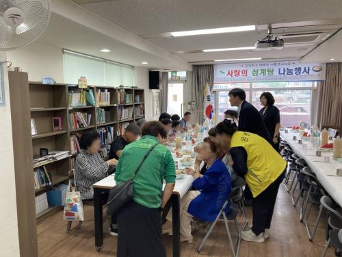 [½Åµ¿¾Æ¹æ¼Û=À̽ŵ¿±âÀÚ] ÀºÆò±¸(±¸Ã»Àå ±è¹Ì°æ) Áõ»êµ¿Àº Ãʺ¹À» ¸Â¾Æ Áö³­ 12ÀÏ °ü³» Àú¼Òµæ ¾î¸£½Å°ú ¶Ç´Â Áö¿ª ¾î¸£½Å µî 150¿© ¸íÀ» ÃÊ´ëÇØ ¡®»ç¶ûÀÇ »ï°èÅÁ ³ª´® Çà»ç¡¯¸¦ °³ÃÖÇß´Ù°í ¹àÇû´Ù. À̹ø Çà»ç´Â Áõ»êµ¿ »õ¸¶À»ºÎ³àȸ°¡ ÁÖ°üÇϰí ÁÖ¹ÎÀÚġȸ, ÀÚ¿øºÀ»ç¡¦