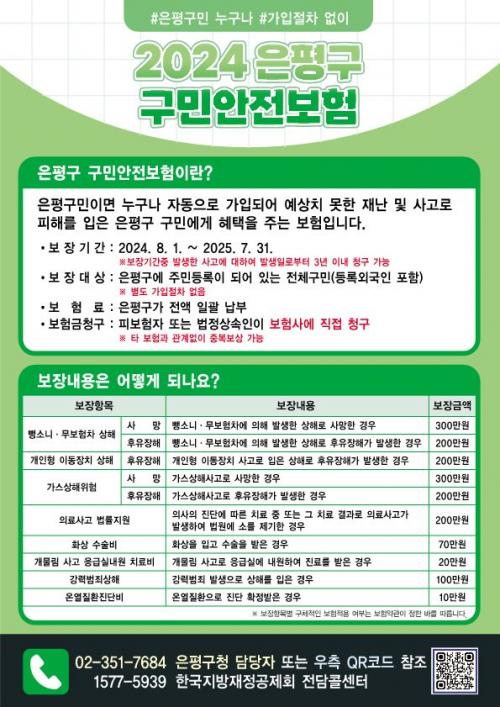 [½Åµ¿¾Æ¹æ¼Û=À̽ŵ¿±âÀÚ]ÀºÆò±¸(±¸Ã»Àå ±è¹Ì°æ)´Â ÀÏ»ó»ýȰ¿¡¼­ °¢Á¾ »ç°í¡¤Àç³­À¸·Î ÇÇÇØ´çÇÑ ±¸¹ÎÀ» º¸È£Çϰí, ÀçÁ¤ÀûÀÎ º¸»óÀ» À§ÇØ ¡®2024³â ±¸¹Î¾ÈÀüº¸Ç衯À» ¿î¿µÇÑ´Ù°í ¹àÇû´Ù. ¡®ÀºÆò±¸ ±¸¹Î¾ÈÀüº¸Ç衯Àº ÀºÆò±¸°¡ Àü¾×À» ºÎ´ãÇϰí, ÀºÆò±¸¿¡ Áֹεî·ÏÀÌ µÈ ¡¦