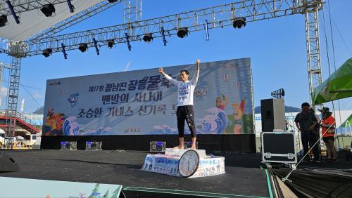 [½Åµ¿¾Æ¹æ¼Û°íÈï=¹Ú±¤¿Á±âÀÚ] ±¹Á¦È¯°æ¿îµ¿°¡·Î Ȱµ¿ ÁßÀÎ °íÈﱺ È«º¸´ë»ç ¸Ç¹ßÀÇ »ç³ªÀÌ Á¶½ÂȯÀÌ 3ÀÏ ¡®Á¦17ȸ Á¤³²Áø ÀåÈï ¹°ÃàÁ¦¡¯¿¡¼­ ¾óÀ½ À§¿¡¼­ ¸Ç¹ß·Î ¿À·¡ ¼­ Àֱ⠵µÀü¿¡ ³ª¼­, Á¾Àü ±â·Ï 5ºÐÀ» ³Ñ±ä 5½Ã°£À» ±â·ÏÇÏ¸ç ¼¼°è½Å±â·ÏÀ» °æ½ÅÇß´Ù. ÀÌ¿¡ ¾Õ¼­¡¦