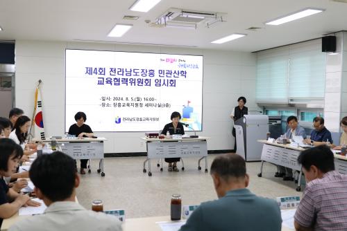 [½Åµ¿¾Æ¹æ¼Û=À̽ŵ¿±âÀÚ]Àü¶ó³²µµÀåÈï±³À°Áö¿øÃ»(±³À°Àå Á¤¼ø¹Ì)Àº 8¿ù 5ÀÏ 3Ãþ ¼¼¹Ì³ª½Ç¿¡¼­ ÀåÈï±³À°ÀÇ Á¤Ã¥ ¹× Çö¾È¿¡ ´ëÇØ ÇùÀÇÇϴ¡®Á¦4ȸ Àü¶ó³²µµÀåÈï ¹Î°ü»êÇÐ ±³À°Çù·ÂÀ§¿øÈ¸ ÀÓ½Ãȸ¡¯¸¦ °³ÃÖÇÏ¿´´Ù. À̳¯ ÀÓ½Ãȸ¿¡¼­´Â Çкθð, Áö¿ªÁֹΠµî ±³À°°øµ¿Ã¼°¡¡¦