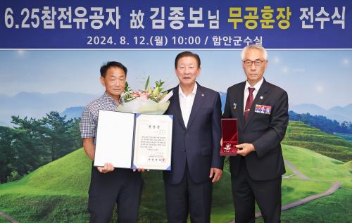 [½Åµ¿¾Æ¹æ¼Û=À̽ŵ¿±âÀÚ] ÇԾȱºÀº 12ÀÏ ¿ÀÀü 10½Ã ±º¼ö½Ç¿¡¼­ 6.25ÀüÀï ÂüÀüÀ¯°øÀÚ Íº±èÁ¾º¸ÀÇ Àº¼ºÈ­¶û ¹«°øÈÆÀå Àü¼ö½ÄÀ» °¡Á³´Ù. ͺ ±èÁ¾º¸ ÂüÀü¿ë»ç´Â 1951³â 2¿ù 6.25ÀüÀï¿¡ ÂüÀüÇØ ±×ÇØ 8¿ù Àü»çÇßÀ¸¸ç °­¿ø°í¼ºÁö±¸ÀüÅõ ¼ö°øÀ¸·Î ¹«°øÈÆÀå ¼­ÈÆ´ë»óÀڷΡ¦