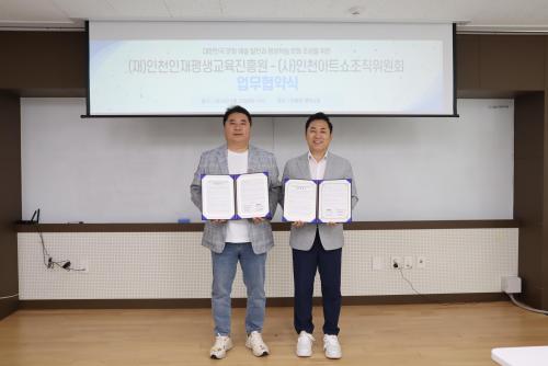 [½Åµ¿¾Æ¹æ¼Û ÀÎõ= À±¹Î½Ä±âÀÚ] ÀÎõÀÎÀçÆò»ý±³À°ÁøÈï¿ø(¿øÀå Á÷¹«´ëÇà Á¶¹Î¼ö)Àº 20ÀÏ, ÀÎõ¾ÆÆ®¼îÁ¶Á÷À§¿øÈ¸(ÀÌ»çÀå Á¤±¤ÈÆ)¿Í »óÈ£ Çù·ÂÀ» À§ÇÑ ¾÷¹«Çù¾àÀ» ü°áÇß´Ù°í ¹àÇû´Ù. ¡Û À̹ø Çù¾àÀ» ÅëÇØ ¾ç ±â°üÀº ´ëÇѹα¹ÀÇ ¹®È­¡¤¿¹¼ú ¹ßÀü ¹× Æò»ýÇнÀ ¹®È­ È®»ê¡¦
