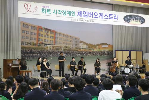 [½Åµ¿¾Æ¹æ¼Û=À̽ŵ¿±âÀÚ]8¿ù 22ÀÏ °íÈï¹Ýµµ ³¡ÀÚ¶ô °íµîÇб³ÀÎ ³ìµ¿°íµîÇб³(±³Àå À̼ҿµ)´Â ÇÏÆ®½Ã°¢Àå¾ÖÀΠüÀÓ¹ö¿ÀÄɽºÆ®¶ó¸¦ ÃÊûÇÏ¿© °¨µ¿ÀÇ °ø¿¬À» ¿­¾ú´Ù. ÀÌ»óÀç ´ÜÀåÀÌ À̲ô´Â ÇÏÆ®½Ã°¢Àå¾ÖÀΠüÀÓ¹ö¿ÀÄɽºÆ®¶ó´Â ½Ã°¢Àå¾ÖÀÎÀ¸·Î ±¸¼ºµÈ ¼¼°è À¯ÀÏÀÇ Ã¼ÀÓ¡¦