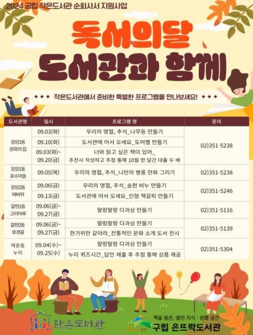 [½Åµ¿¾Æ¹æ¼Û=À̽ŵ¿±âÀÚ]ÀºÆò±¸(±¸Ã»Àå ±è¹Ì°æ)´Â ±¸¸³ Àº¶ß¶ôµµ¼­°ü¿¡¼­ °ü³» °ø¸³ ÀÛÀºµµ¼­°ü 6°÷À» Áö¿øÇØ 9¿ù µ¶¼­ÀÇ ´Þ ¡¯µµ¼­°ü°ú ÇÔ²²¡® ÇÁ·Î±×·¥À» ¿À´Â 3ÀϺÎÅÍ 27ÀϱîÁö ¿î¿µÇÑ´Ù°í ¹àÇû´Ù. ¡¯µµ¼­°ü°ú ÇÔ²²¡® ÇÁ·Î±×·¥Àº 9¿ù µ¶¼­ÀÇ ´Þ°ú Ãß¼®À» ¸ÂÀÌÇØ ¡¦