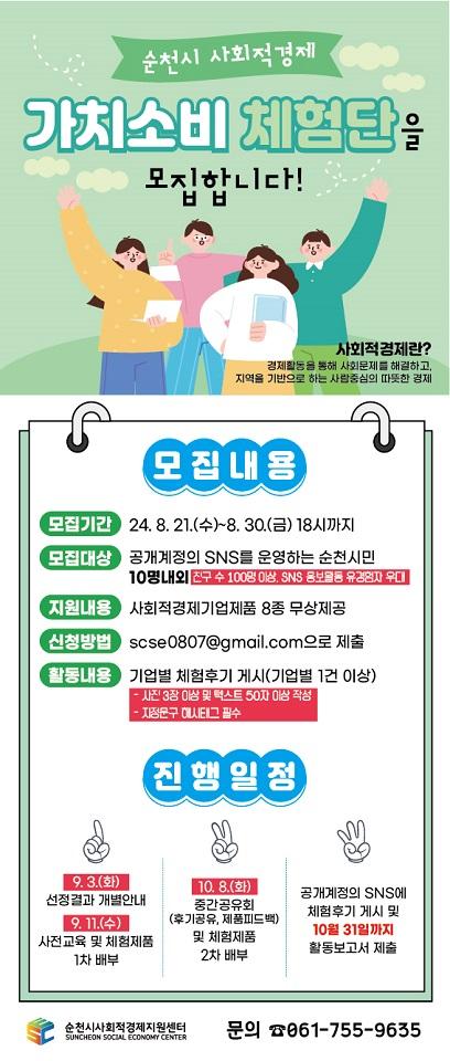 [½Åµ¿¾Æ¹æ¼Û ¼øÃµ=±è³²±â ±âÀÚ] ¼øÃµ½Ã(½ÃÀå ³ë°ü±Ô)´Â 9¿ùºÎÅÍ 10¿ù±îÁö ¿ì¸®Áö¿ª »çȸÀû°æÁ¦±â¾÷ Á¦Ç°À»Ã¼ÇèÇϰí SNS¸¦ ÅëÇØ Á¦Ç° È«º¸¸¦ ÇÏ´Â ¡®°¡Ä¡¼Òºñ üÇè´Ü¡¯À» ¿î¿µÇÑ´Ù°í¹àÇû´Ù. ÀÌ ÇÁ·Î±×·¥Àº Áö¿ª »çȸÀû°æÁ¦±â¾÷ÀÇ Á¦Ç°À» ³Î¸® ¾Ë¸®°í »çȸÀû °¡Ä¡¼Òºñ¡¦